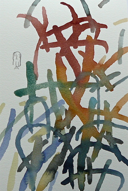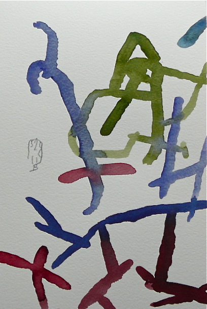 I also left unheeded the ideas that the first drawing of pain in posting #19 had brought up; the chance to resolve contradictions in the drawing and the idea to follow the green. These seem to be very good ideas to follow. I do more than can get into the blog. So now I decide to report of where I am now. Somehow, one day all these unconnected reports will make good sense together. For now, I’ll just show you things as they are. And oh, I feel relieved from the shame. It worked. When I think about it now I feel that whatever was there is not a big deal any more. Not my main issue for sure. The fear, connected to the pain, the way the body shows me that it really does not like the pain, seems to be a more pregnant issue to deal with now. When the pain goes crazy at night I meditate in such a way that I find the emotions behind how I shake physically, and at times the shaking stops, I feel calm, in spite of the raging pain, and meet an endless pit of fear. Sometimes this fear jumps to my throat. No matter where it is, I stay with it until I fall asleep. For sure it will be a good idea to relate to it with a drawing. Maybe it will come.