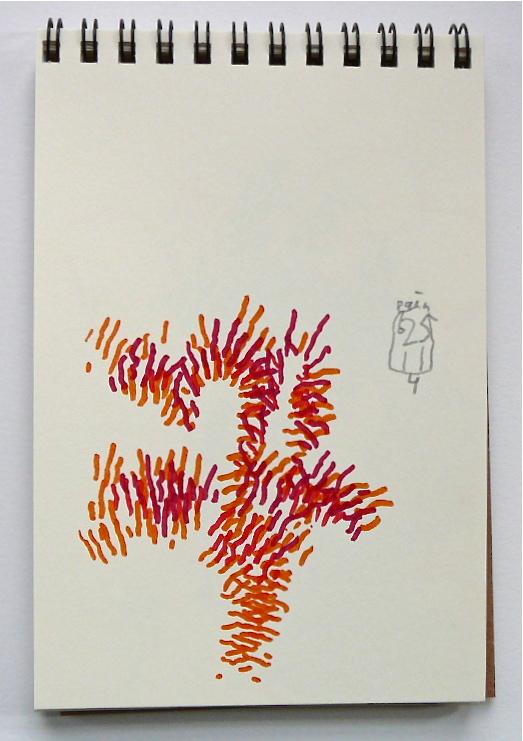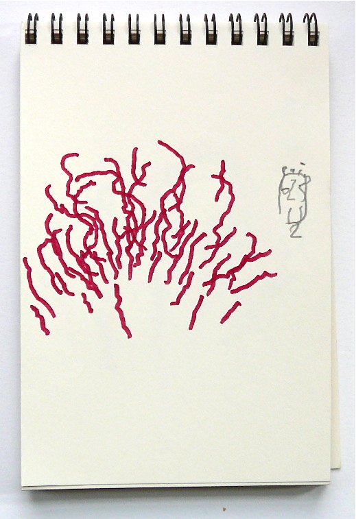 On the left you can see the collection of words. I moved my eyes all over the drawing and caught all the words that showed up in my mind, as I was doing it.