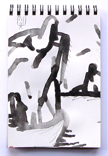 Right after posting #46 I have to move the car for parking regulation. I double park where the police does not ticket and go to the Hungarian Pastry Shop, across the street from the Cathedral of St. John The Divine. I sit in the deepest and darkest corner, and this is why I use black watercolor. I won’t be able to see other colors clearly enough.