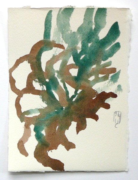 Now the green, when I drew what he wanted to say, he wanted to grow up too. He wanted to naturally grow up and align himself with eternity. But kept failing. The green brought the brown along to help it. The brown gave the green a ground, but also the more material substance so it could hold itself erect as it went up. But the brown started to turn down half way through, as all flesh does. It goes up and it goes down afterward. The flesh is cyclical and belongs to the temporary existence.