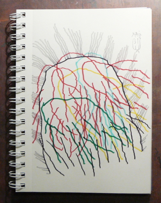 And there is a disadvantage. You need to have with you a pad and something to draw with at all times. When you go through life and suddenly something happens that requires some work of release, you have to have these with you. This is how I live. I always have a small drawing pad, something to draw with and something to write on. Nevertheless, there are times when you just can’t stop everything and do a drawing. In these times, you have to have some other method to work with and my preferred one is meditation, or going to a deeper state, because I do not like to use words if they are not art. Being aware immediately of anything that arises in me as I walk in the street, as I am in the middle of talking with another human being, as I am watching a movie or an art object, etc, is the key. If I am aware of everything that arises in me in the moment that it arises, and if I immediately give this energy space to live its life, if I allow myself to be able to feel and experience just every single thing that arises in me without trying to stop it and without wanting it to go away, then my life becomes a constant releasing, without the release technique.