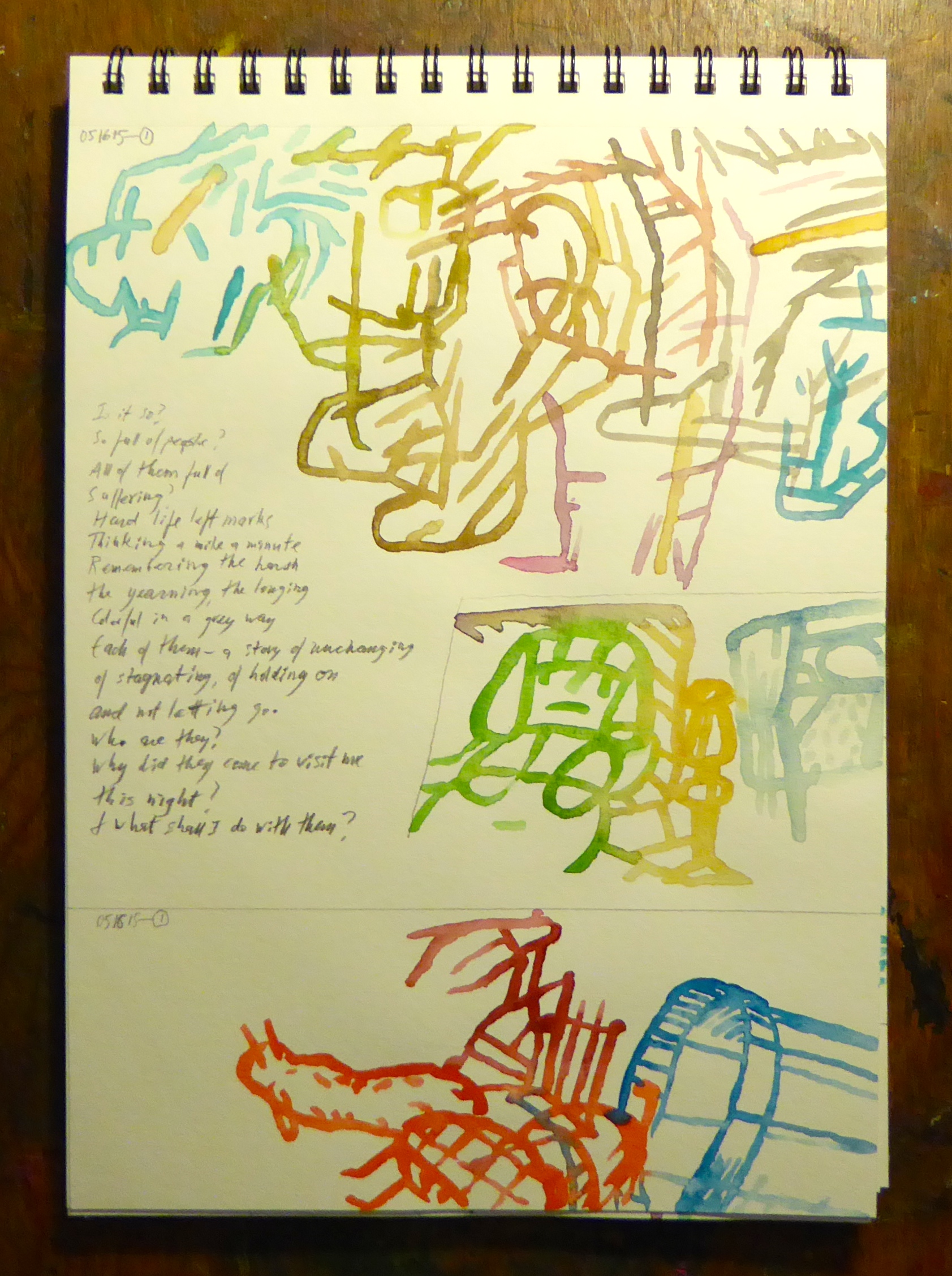 I am leafing through blocks of mixed-media-paper that hold drawings and readings from between May 12th and today, May 25th.