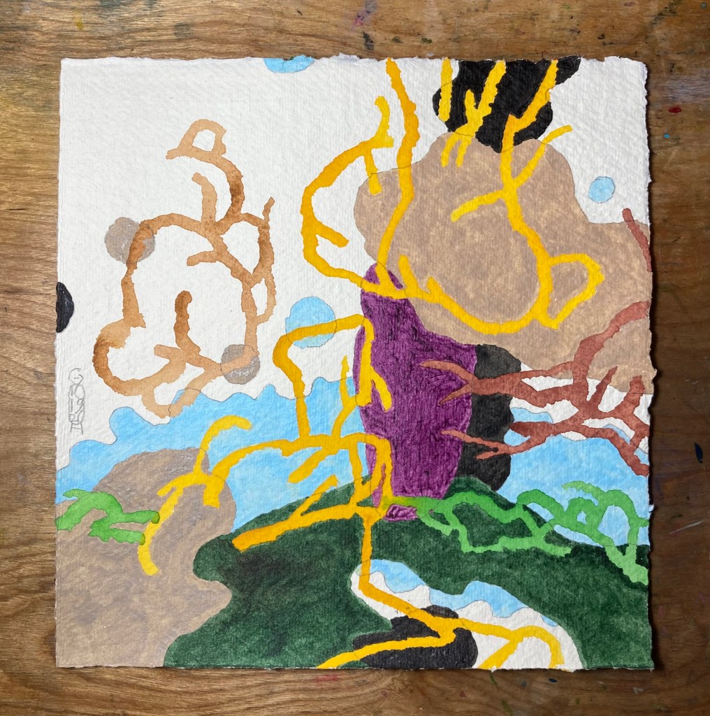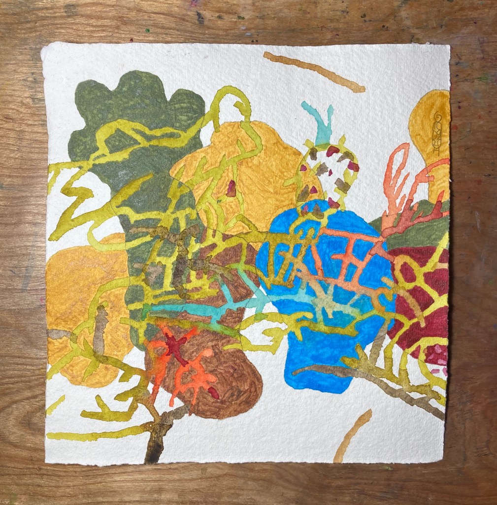 This happens too in the drawing and in the addition of background colors. The drawing already is a process of increasing awareness. So when the background colors’ time comes, I am already in a deeper state than the way I started, and the background colors are added with greater understanding and compassion. (Note: I do the background after I do the line-work.)