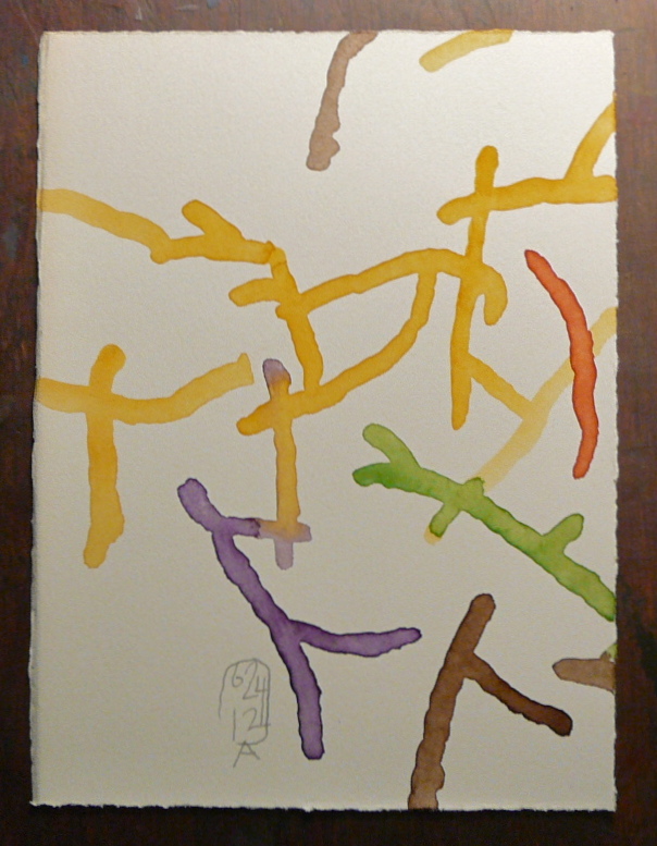 I did a lot of drawings during this process and won’t be able to show them all to you. I never was able to sow all that I was doing. I try to show the important ones. Some of the work included pretty intense release of old programs from the subconscious. Thinking about what I intended to do, I found myself afraid one day and started to draw, which lead me to feel wanting to grow but escaping, then there was a big self cancellation, then an experience of shock, then anger and more anger, and eventually good feeling. This was done in twelve drawings and quick writing, in one evening and the morning that came after it.